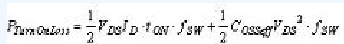 在這一公式中,ID為剛導通后的漏電流,VDS為開關上的電壓,COSSeff為等效輸出電容值(包括雜散電容效應),tON為導通時間,fSW為開關頻率。.