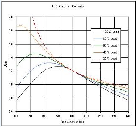 圖2:非對稱半橋和LLC轉換器的增益曲線