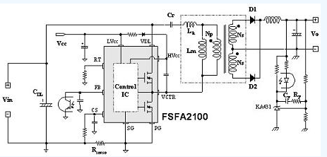 圖3:基于FSFA2100的非對稱半橋轉換器