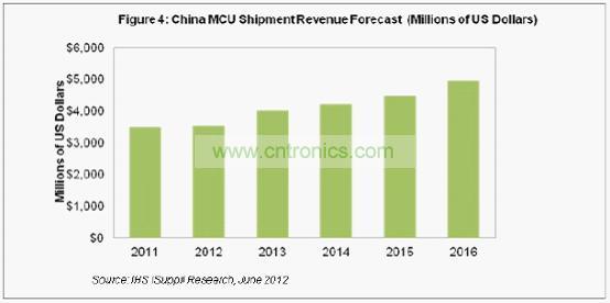 據IHS iSuppli公司的中國研究服務,全球宏觀經濟擔憂與中國政府支出減少,正在給2012年中國微控制器(MCU)市場造成一些麻煩,預計今年營業收入將持平于2011年的水平。