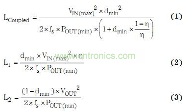 方程式 1 到 3 表明了耦合電感和非耦合電感的電感計算過程。