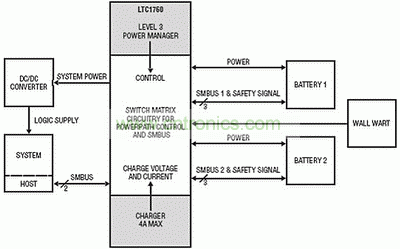 圖3 LTC1760雙電池充電器/選擇器系統架構