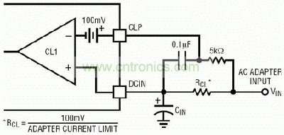 RILIM電阻有兩個作用。首先,它告訴LTC1760的SMBus接口,充電器可以供給電池的最大可允許電流,任何超過這個限度的值都會被限定值所取代。第二個作用是讓PWM充電器的滿標度電流與SMBus接口的滿標度限流值同步。