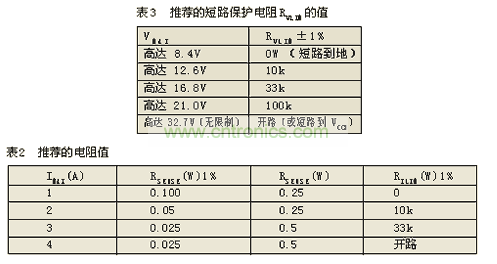 VLIM引腳到GND之間連接的外部電阻值可以決定5個充電器輸出限壓值中的任一個(見表3)。這種用硬件實現限壓值的方法是一種比較安全的措施,它是不能被軟件方式所取代的。