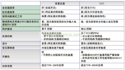 雙管QR反激與LLC諧振轉換器如圖4所示,左邊為雙管QR反激,右邊為LLC諧振轉換器等特點。