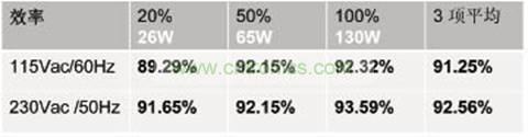 19V/90W輸出的適配器,這個適配器高16.5mm,長95mm,寬60mm,在這么一個薄小的設計卻能達到較好的效率,如表2所示。130W/19V一體機PC電源效率如表3所示。130W/19V一體機PC電源效率如表3所示。200W/19V 一體機PC電源效率如表4所示。