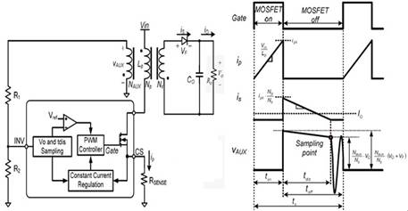 圖1原邊控制應(yīng)用框圖及主要節(jié)點(diǎn)波形圖。