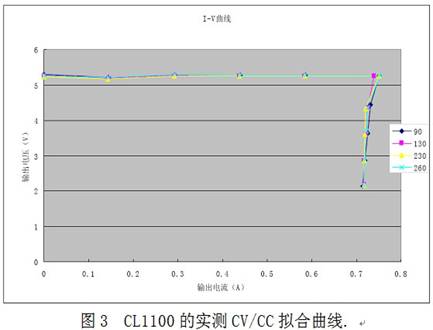 芯聯(lián)半導(dǎo)體推出的CL1100就是一款具備初級(jí)(原邊)調(diào)節(jié)技術(shù)、變壓器容差補(bǔ)償、線纜補(bǔ)償和EMI優(yōu)化技術(shù)的原邊反饋AC-DC控制器,并且具有多種保護(hù)功能,例如軟啟動(dòng)、逐周期的過(guò)流保護(hù)(OCP)、CS采樣端前沿消隱(LEB)、以及過(guò)壓保護(hù)(OVP)和欠壓保護(hù)(UVLO)。實(shí)測(cè)的CL1100的恒壓/恒流特性曲線如圖3所示,該芯片可將恒壓/恒流精度都控制在±3%之內(nèi)。
