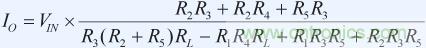 在公式1中,負載電阻影響輸出電流,但如果我們設置R1 = R3和R2 + R5 = R4, 則方程簡化為: