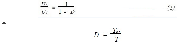 其中,UL為電感兩端電壓在一個開關周期內的平均值;U0為輸出電壓;Ui為輸入電壓;T為開關周期;ton為Q3處于通態的時間;toff為Q3處于斷態的時間。令UL=0,在電感電流連續的工作過程中有: