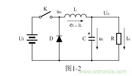 對于圖1-2,如果不看控制開關K和輸入電壓Ui,它是一個典型的反 型濾波電路,它的作用是把直流脈沖電壓通過平滑濾波輸出其平均值。
