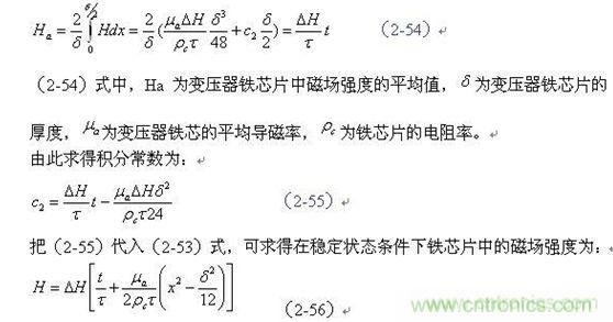 由于在變壓器鐵芯片內(nèi),截面磁場強(qiáng)度的平均值Ha,在任一時(shí)間內(nèi)都必須等于電磁感應(yīng)所要求的值,即滿足(2-40)式的要求,因此對應(yīng)圖2-19對(2-53)式求平均值得: