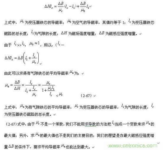 這里特別指出:(2-68)式給出的結(jié)果,是在初步滿足磁感應(yīng)強(qiáng)度增量要求的條件下,求有氣隙鐵芯的平均導(dǎo)磁率