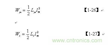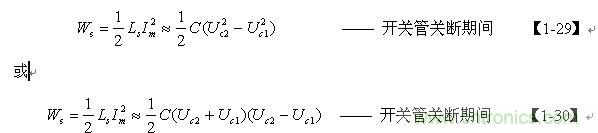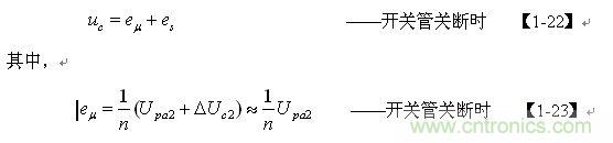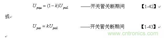 【1-42】和【1-43】式中, k=Ls/L為漏感 Ls與開關變壓器初級線圈的電感L的比值。