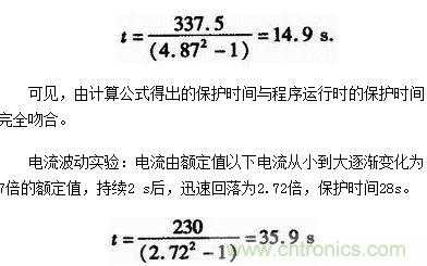 電流恒定實(shí)驗(yàn):設(shè)為實(shí)際恒定電流值,當(dāng)n=4.87倍時,保護(hù)時間14 s。