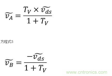 其結(jié)果是,AC波動(dòng)出現(xiàn)在跨該斷點(diǎn)的兩個(gè)節(jié)點(diǎn)(A和B)處。該頻率分析儀具有兩個(gè)接收器,能測量節(jié)點(diǎn)A和節(jié)點(diǎn)B處的信號(hào)vA和vB。您可用方程式1計(jì)算出該系統(tǒng)環(huán)路增益TV: