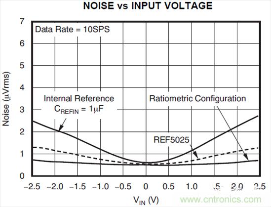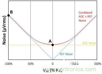 圖2:ADC和基準噪聲與輸入電壓之間的關系