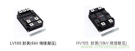 至于X系列單管HVIGBT模塊,采用第7代IGBT和RFC Diode硅片技術,實現更低飽和壓降和開關損耗;使用LNFLR技術實現低熱阻; 允許最高運行結溫150℃;安全工作區(SOA)裕度大,續流恢復能力強; 封裝兼容傳統的H系列HVIGBT;標準產品包括1800A/3.3kV、1350A/4.5kV和900A/6.5kV;此外,還有業界規格最大,針對電力傳輸應用而開發的6500V/1000A單管HVIGBT。