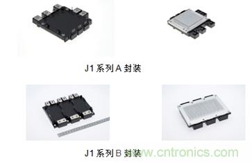 J1系列汽車用IGBT模塊是專為電動汽車驅動器,及高可靠性逆變器設計,采用Pin-fin底板的六合一汽車用IGBT模塊。它使用第7代IGBT硅片技術,損耗更低;高可靠性的DLB(直接主端子綁定)技術;及基于硅片的溫度和電流檢測技術。J1系列提供A、B兩種封裝。A型封裝(小封裝)有300A/650V、600A/650V、400A/900V和300A/1200V;B型封裝(大封裝)有1000A/650V和600A/1200V,這兩種封裝可以滿足從小型電動汽車到大型電動公交車的應用要求。