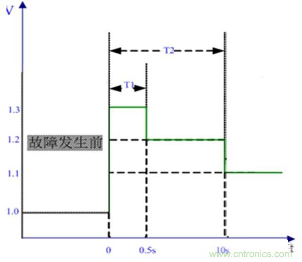 1.2pu ≤UT≤1.3pu,應至少持續(xù)運行0.5s