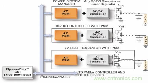 由于要面對這些挑戰,因此凌力爾特決定開發一個 PSM 產品線,其包括具集成型功率 FET 柵極驅動器和豐富齊全之電源管理功能 (通過基于 I2C 的 PMBus 來使用) 的同步降壓型 DC/DC 控制器。這些功能包括高精度基準和可提供 ±0.5% DC 準確度的溫度補償型模擬電流模式控制環路、經過校準以不受工作條件之影響的簡易型補償、逐周期電流限制、快速和準確的均流、以及針對線路電壓和負載瞬變的響應,并不存在任何與 ADC 量化相關聯的誤差,此類誤差是采用 “數字” 控制之產品中所常見的。該產品線的某些產品還內置了可提供輸入和輸出電壓及電流、占空比和溫度之數字回讀的 16 位數據采集系統。另外,還整合了通過一個中斷標記及一個 “黑匣子” 記錄器 (其負責存儲發生某種故障之前的轉換器工作狀況) 實現的故障記錄功能。