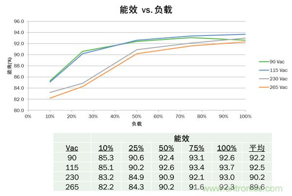 圖4. 45 W參考設(shè)計(jì)能效 vs. 負(fù)載曲線(xiàn)