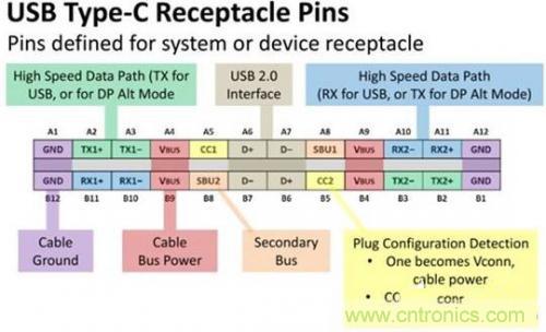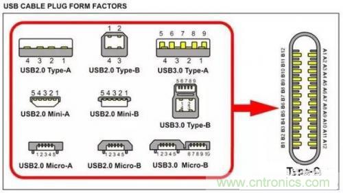 Type-C總計有24個針腳,而USB 3.0接口通常是9到11個,USB 2.0只有4個針腳。針腳的增多并沒有導致Type-C接口體積變大,實際上它還縮小了體積(相對標準口來說),滿足了移動設備的需求。