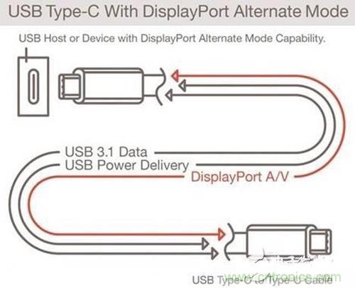 視訊電子標準協會(Video Electronics Standards Association,VESA)宣布DisplayPort的傳輸影像的技術,支援USB-IF制定的USB 3.1規格中的Type-C,允許Type-C擁有中轉音頻和視頻信號的功能,支持4K分辨率的影像傳輸。除了 DP 信號以外,USB電力傳輸(USB Power Delivery)規范2.0中新添的替代模式(Alternate Mode)允許非USB信號通過USB接口進行傳輸,支持USB Power Delivery 2.0規格,可以高達 100W 的供電能力。