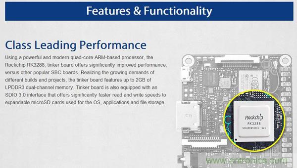 據外媒報道,今年初,華碩已推出了一款搭載Cortex的微型電腦Tinker Board,據介紹,華碩微型電腦Tinker Board搭載了Rockchip RK3288處理器Cortex-A17,主頻為1.8GHz,支持4K H.264視頻解碼、Ethernet傳輸速度可以達到千兆級別,定價為64.9歐。