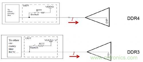 驅動DRAM工業發展的一個主要市場需求是對內存器件的低功耗要求。介于這個原因,DDR4引入了一個新的IO驅動標準,成為PSOD(Pseudo Open Drain)。在PSOD里,接收端將信號端接到軌電壓(VDD),而不是軌電壓的一半(VDD/2)。