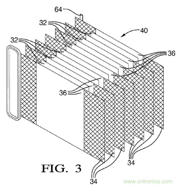 下圖Fig3是雙極性電極的堆疊stack,可以稱之為電堆40。其中,32是隔膜;34是集流體;36是雙極性電極,兩側(cè)分別是正負(fù)極活性物質(zhì)。基本結(jié)構(gòu)與上面的示例是一樣的。