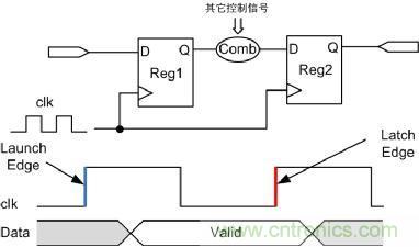 (2)捕獲沿(Latch Edge):后記寄存器捕獲數據對應的時鐘沿,是時序分析的終點。相對于launch Edge通常為一個時鐘周期,但不絕對,如多周期。
