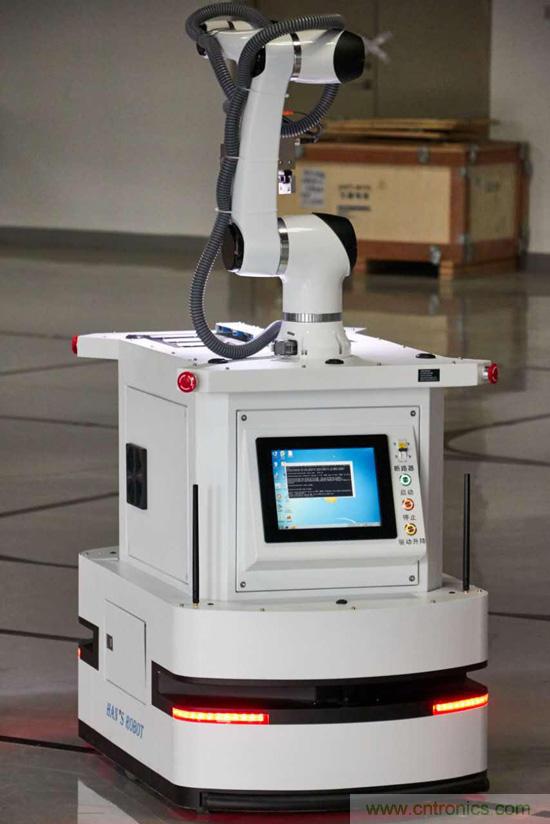Star機器人是大族機器人產品線的一款明星產品,該機器人融合了大族自有的移動機器人、機械臂、視覺系統、力控夾具等核心部件,可以實現手臂末端±0.2mm的重復抓取精度。機器人運行過程中通過磁帶與激光SLAM混合導航,運行靈活,機器人可以實現前進、后退、原地轉向等動作。機械臂臂展可以達到950mm。