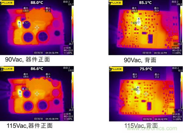 該方案在230 Vac、滿載條件下的開關(guān)頻率高達約130 KHz。