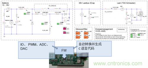 控制軟件采用了先進的基于模型的設計方法。包括對整個電源管理在VHDL-AMS中進行建模[8]。通過經IEEE標準化處理的模型描述語言,也可根據硬件特性對控制系統進行建模和模擬,以及通過自動編碼將控制系統以自動化方式轉移到目標硬件[9]。