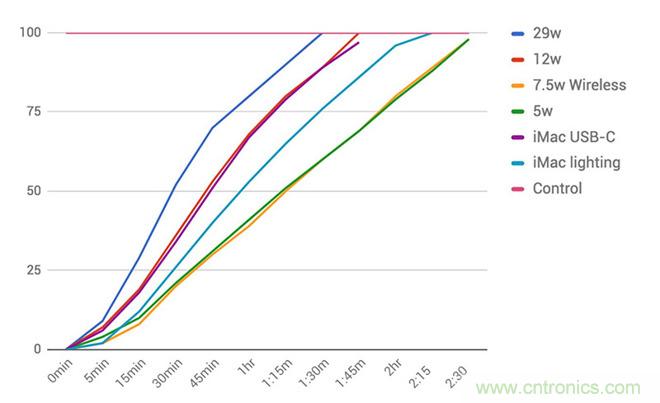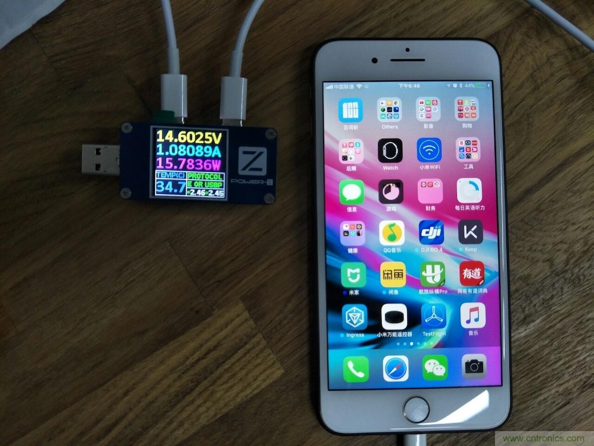 此外,2017 年發布的三款新 iPhone 也都支持 PD 充電協議,采用“高壓小電流”的快充方案,輸入功率可達 15W,不過電量達到 75% 之后功率會降低到 7.5W 左右。
