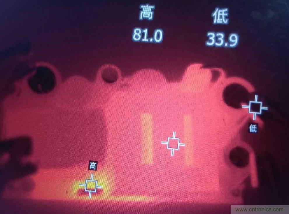 熱成像儀觀測(cè)下的發(fā)熱電源模塊如圖1所示: