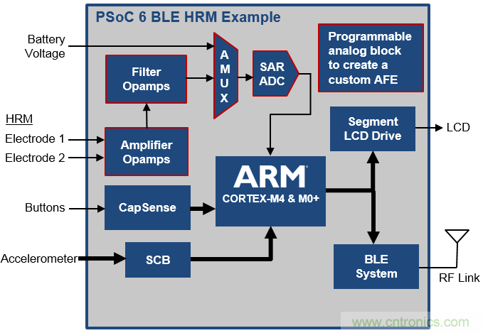 圖2:集成BLE連接與電容式觸摸感應的PSoC 6