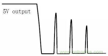 在輸出空載或輕載時,關閉輸入電壓,輸出(如5V)可能會出現如下圖所示的電壓反跳的波形。