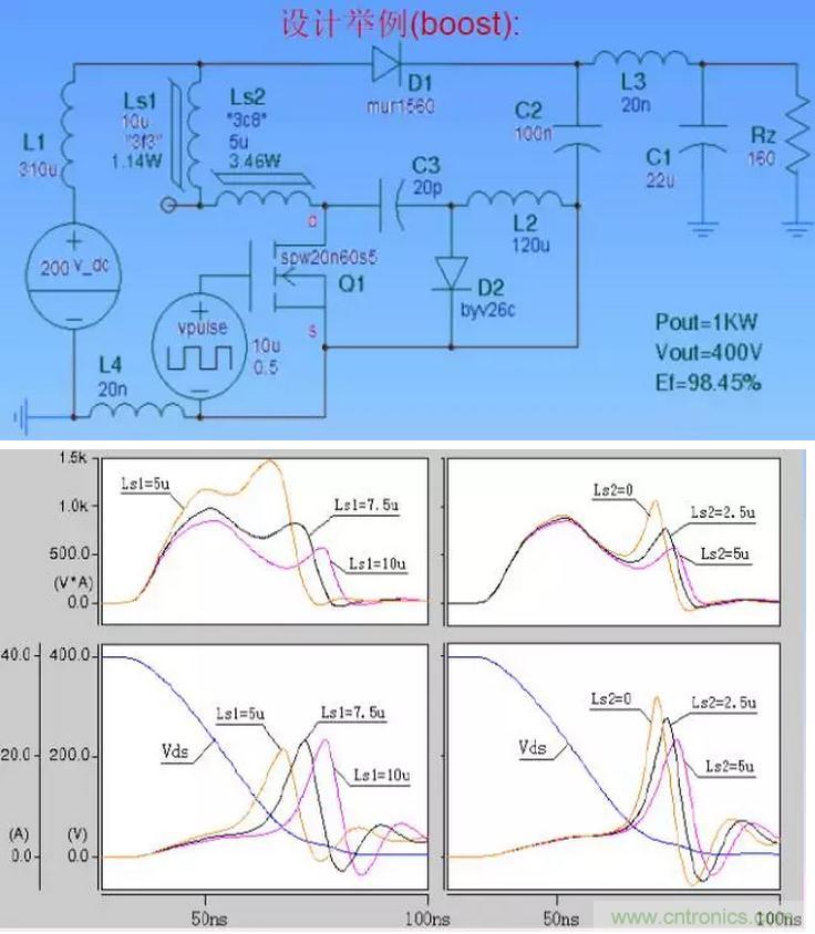 適當的緩沖電感(L3)參數可以大幅度減少開關管損耗,實現高效率。