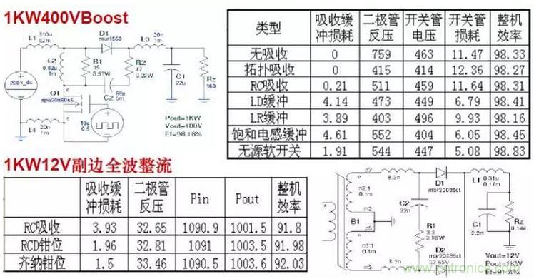 無源無損軟開關電路效率明顯高于其他緩沖吸收方式,與有源軟開關電路效率相差無幾。因此只要能夠實現無源軟開關的電路,可不必采用有源軟開關。
