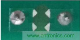 另一種辦法是在PCB設(shè)計時,在共模電感兩端加入放電齒,使得電感通過兩放電尖端放電,避免通過其他路徑放電,從而使得對周圍和后級器件的影響減到最小。如圖3是ZLG致遠電子型號為PA1HBxOD-10W的電力電源模塊PCB在共模電感處加入的放電齒的實物圖。
