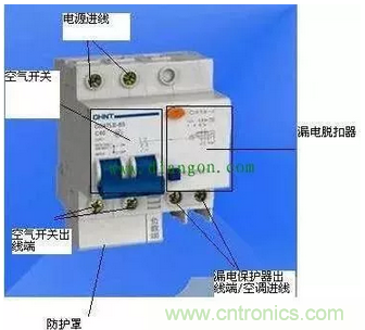 第三種情況是漏電保護開關(guān)本身正著安裝但是接線是反著安裝的: