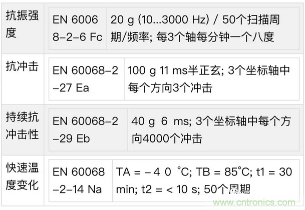 標準文件冗長,因為有標準可查看,就不一一具體說明了。這里除了可以去看看EN60068這個標準文件,選型的時候對您也是有幫助的,特別是如果您的產品應用有震動例如振動臺、抗沖擊例如機車床設備等等,或者環境使用溫度有高低溫要求的時候,這時這些標準的符合性就是您選型首要依據了。