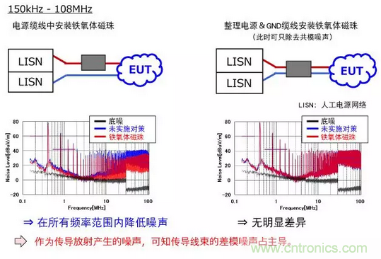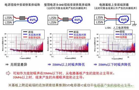 對于放射噪聲,也調查問題源是共模傳導模式還是差模傳導模式。(150kHz-30MHz帶域)