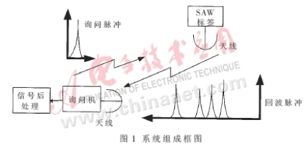 SAW傳感器構(gòu)成的車輛識別系統(tǒng)由一個裝載在高速運動車輛上的SAW傳感器標(biāo)簽、一個帶主動式天線的詢問單元和一個信號后處理單元組成。如圖1所示。