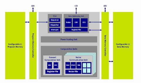 CEVA-XC架構基于整合在CEVA-X處理器中的1、2或4個矢量通信單元(VectorCommunicationsUnit)而構建。每個向量單元是一個256位SIMD引擎,采用3路VLIW和大量16MAC、算法、邏輯及位移單元。CEVA-XC指令集可以滿足4G無線調制解調器的要求,包括矩陣處理、MIMO檢測器、復雜濾波、數據交換和比特流處理。