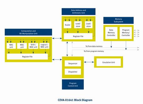 CEVA-X1641是CEVA-XDSP系列中的一款四MAC單元產品,由4個16位數據寬度的MAC單元組成。在65nm的最差條件下,CEVA-X1641也能夠在700MHz以上的高頻下運行。