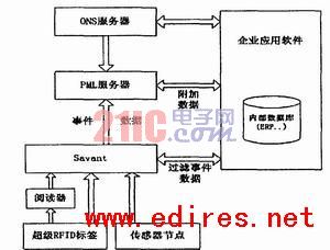 在圖3中,事件管理系統應用在EdgeSavant(ES)上采集標簽解讀事件,它與解讀器應用程序通信,管理解讀器發送的事件流。EMS體系結構中的“解讀適配器”和“解讀器接口”可看作一個通用的接口,對于EdgeSavant來講,由于解讀適配器直接或間接的與解讀器進行通訊,并收集解讀器探測到的事件,然后將這些事件寫入解讀器接口。對于InternalSavant來講,它是Edgesavants的父節點或上級,IS從他的下屬EdgeSavant中采集EPC數據,因此“解讀適配器”和“解讀器接口”可看作是通用的網絡數據訪問接口。