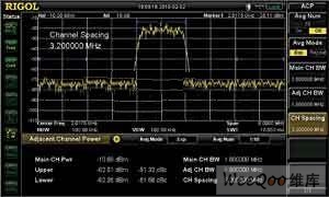OBW占用帶寬功能可以檢測(cè)自己關(guān)心部分的能量是否在特定的帶寬內(nèi)。通過設(shè)置功率比為99%,測(cè)得該信號(hào)在帶寬1.396666MHz內(nèi)包含了 99%的能量。